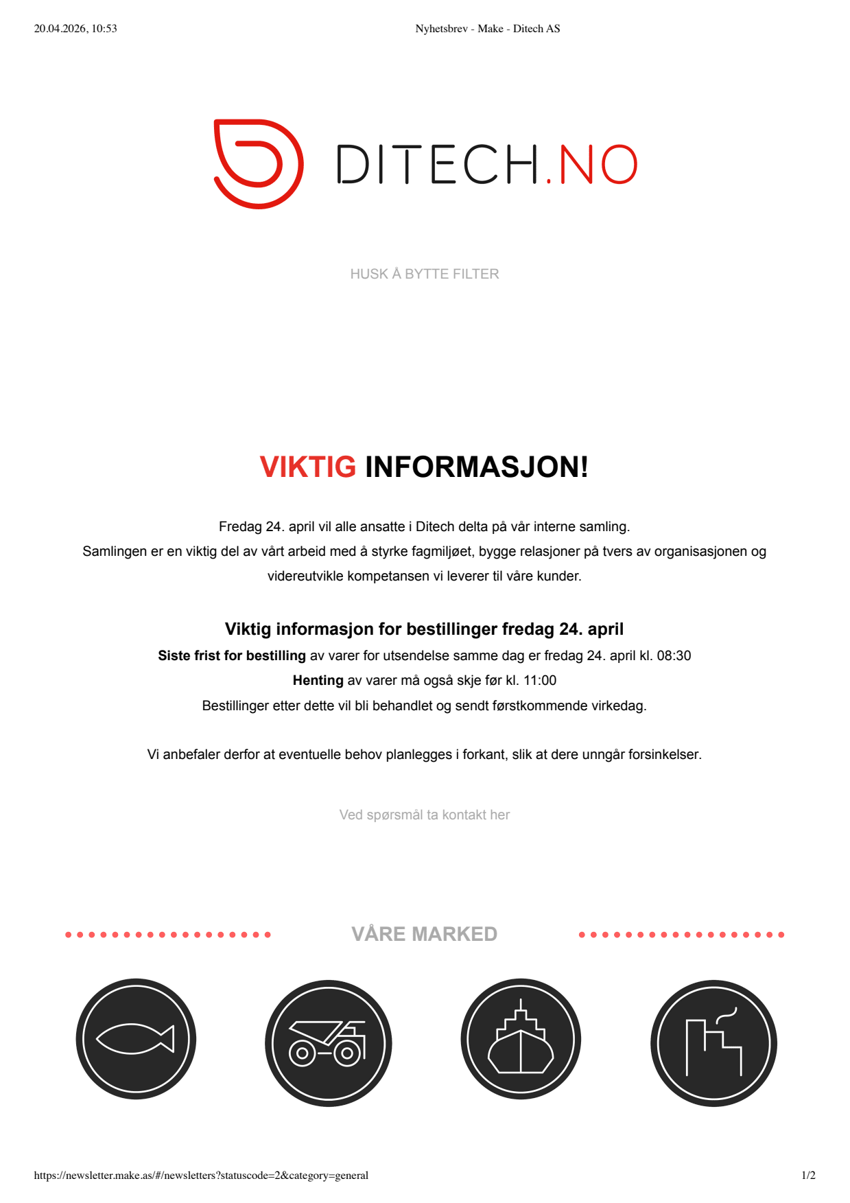 Vi i ditech ønsker alle kunder, leverandører og forhandlere en god påske. Våre åpningstider finner du her.