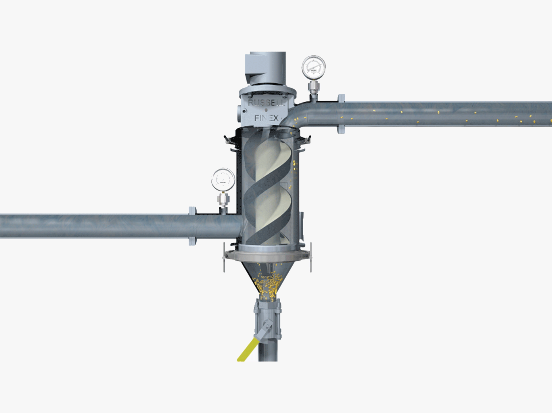 Duplex scrapers rotate inside the screw at a specified differential pressure, pushing particles to the bottom of the chamber. The filter then opens automatically via the control panel for cleaning.