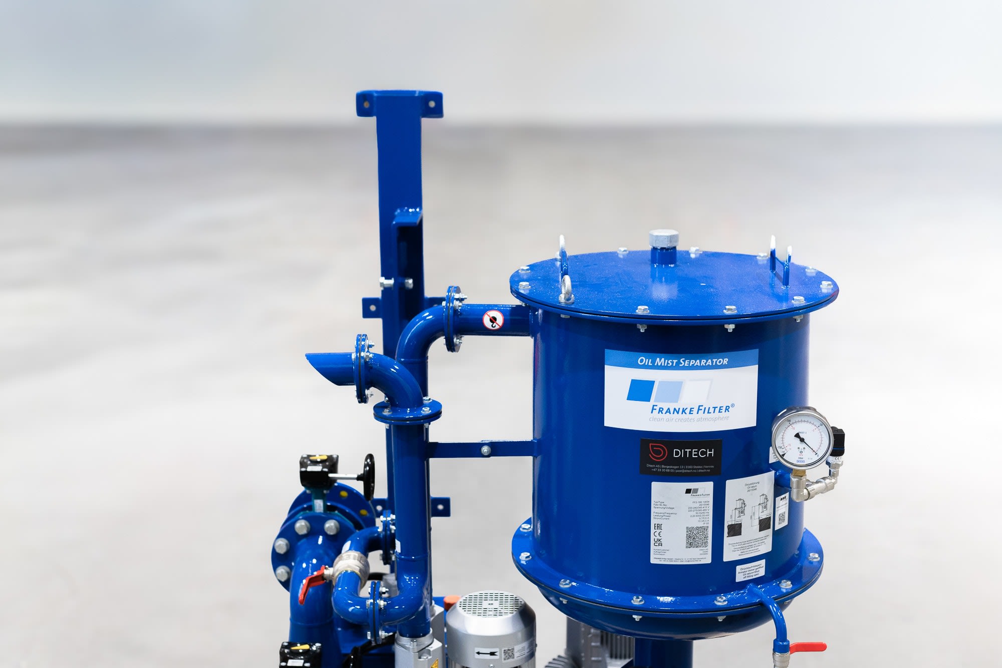 Én oljedampseparator installeres per system eller maskinlinje for samlet og effektiv håndtering av oljedamp.